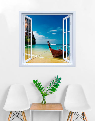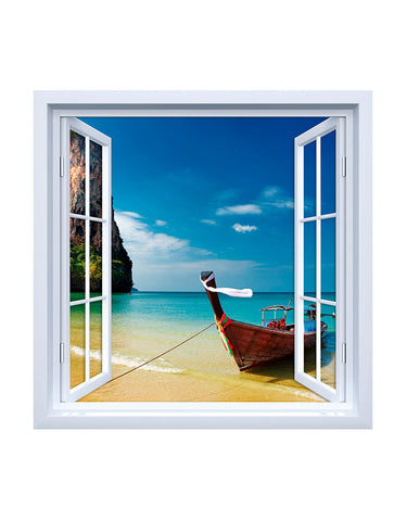 Adesivo de Janela Barco Beira Mar