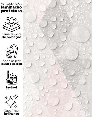 Nossos adesivos são laváveis e incluem linhas especiais para áreas úmidas, como box, pias, pisos, entre outros. Para locais com contato frequente com água ou que demandam limpezas constantes, sugerimos a aplicação da película protetora. Ela proporciona um acabamento brilhoso e pode ser facilmente higienizada com pano úmido e sabão neutro.