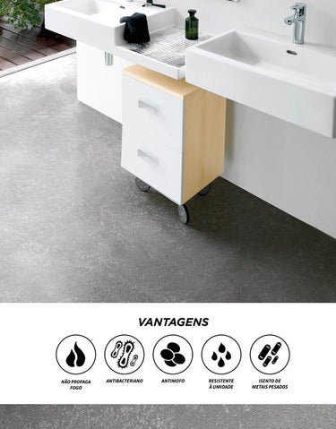 Adesivo para Chão Cimento Queimado oferece o visual industrial e moderno do concreto aparente em uma solução prática. Com textura realista e tonalidades neutras, é perfeito para criar ambientes urbanos em salas, varandas e áreas comerciais. Resistente e de fácil aplicação, ideal para quem busca um piso estiloso sem obras demoradas.