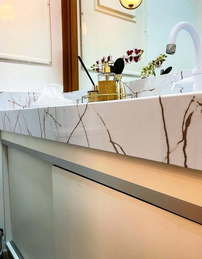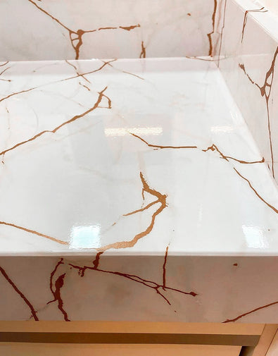 Dê vida à sua pia com o Adesivo para Pia Mármore Calacatta Oro Brilho! Com um design que imita o mármore natural, ele adiciona elegância e sofisticação ao ambiente. Impermeável e resistente à umidade, é perfeito para cozinhas e banheiros, protegendo contra respingos e sujeira. Fácil de aplicar e limpar, transforma seu espaço com praticidade e sem reformas.