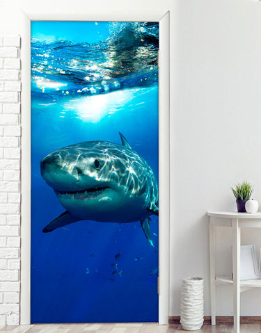 Decore sua porta com o Adesivo para Porta Tubarão. Adicione um toque de aventura e emoção ao seu ambiente com a imagem de um tubarão.