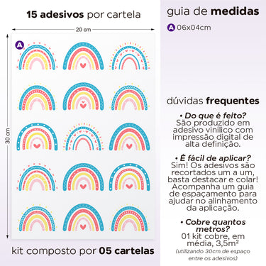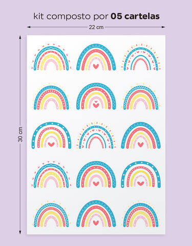 Traga uma explosão de cores e alegria ao quarto infantil com a Cartela Adesiva Arco-Íris Colorido. Este conjunto de adesivos é perfeito para decorar paredes, adicionando um toque de magia e positividade. Com fácil aplicação, esses adesivos ajudam a criar uma atmosfera vibrante e encantadora. Os arco-íris em tons brilhantes e alegres transformam o ambiente, tornando-o mais acolhedor e divertido, ideal para estimular a imaginação das crianças.