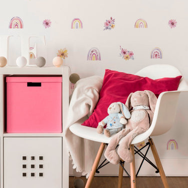 Decore o quarto de menina com a Cartela Adesiva Arco-Íris Floral Boho. Esta cartela contém adesivos de arco-íris combinados com elementos florais em estilo boho, perfeitos para aplicar em paredes. Com fácil aplicação, esses adesivos trazem uma atmosfera alegre e delicada ao ambiente. As cores suaves e os detalhes florais adicionam um toque de elegância e modernidade, criando um espaço acolhedor e cheio de charme.