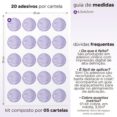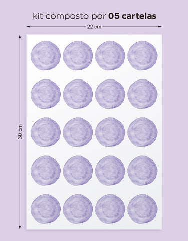 Adicione um toque de encanto e serenidade ao quarto das crianças com a Cartela Adesiva Bolinhas Aquarela Lilás. Com bolinhas em suaves tons de lilás, esses adesivos de alta qualidade são ideais para criar uma decoração delicada e acolhedora nas paredes dos quartos infantis. A aplicação é rápida e descomplicada, proporcionando uma solução prática para transformar o ambiente com charme.