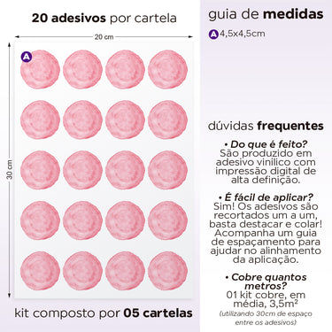 Cartela Adesiva Bolinhas Aquarela Rosa