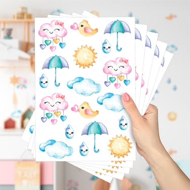 Decore o quarto de menina com a Cartela Adesiva Chuva de Amor. Esta cartela é perfeita para criar uma atmosfera delicada e cheia de alegria, transformando o espaço em um lugar acolhedor e especial. Os adesivos fáceis de aplicar oferecem uma maneira prática e rápida de renovar a decoração, adicionando uma sensação de fantasia e doçura ao ambiente.