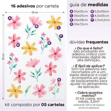 Decore o quarto de menina com a Cartela Adesiva Flores Aquarela. Esta cartela contém adesivos de flores aquareladas, ideais para aplicar em paredes. Com fácil aplicação, esses adesivos proporcionam uma atmosfera romântica e encantadora. As flores, com suas cores suaves e delicadas, adicionam um toque de elegância e frescor ao espaço, criando um ambiente sereno e harmonioso, perfeito para relaxar e sonhar.