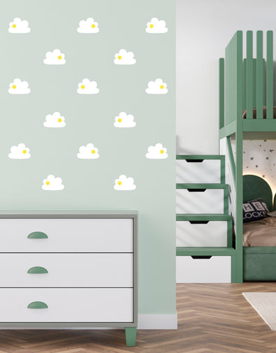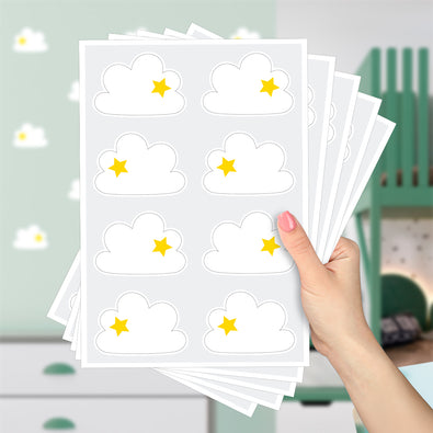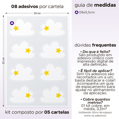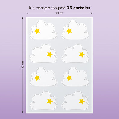 Adicione um toque suave ao quarto infantil com a Cartela Adesiva Nuvem Branca Estrelinha. Esta cartela contém adesivos autoadesivos de nuvens brancas com estrelinhas, perfeitos para decorar paredes. Com fácil aplicação, esses adesivos criam uma atmosfera tranquila e serena. As nuvens com estrelinhas proporcionam uma sensação de calma e delicadeza ao espaço, tornando-o mais acolhedor e agradável.