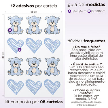 Traga uma decoração adorável ao quarto de bebê com a Cartela Adesiva Ursinhos e Corações Azuis. Estes adesivos são perfeitos para criar um ambiente calmo e acolhedor, com lindos ursinhos e corações que trazem um toque de suavidade ao espaço. Com fácil aplicação, os adesivos oferecem uma maneira prática de decorar as paredes, criando uma atmosfera serena e confortável, ideal para o crescimento e bem-estar do bebê.