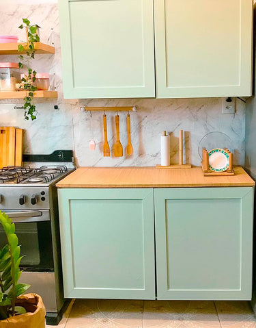 Importante: em paredes com gesso ou massa corrida, é necessário aplicar uma demão de tinta para remover o excesso de pó; caso contrário, o adesivo pode se soltar.