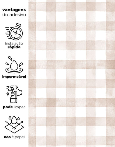O papel de parede xadrez bege adesivo é a escolha perfeita para quem busca unir charme, praticidade e versatilidade na decoração. Com um delicado padrão xadrez Vichy aquarelado, em tons neutros e suaves, ele cria um ambiente acolhedor e elegante. Ideal para quartos de bebê, infantil, salas ou até mesmo espaços comerciais, combina com diferentes estilos, do clássico ao moderno.