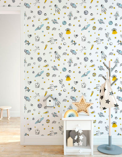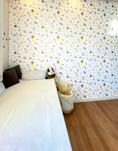 Adicione um toque de aventura ao quarto das crianças com o Papel de Parede Adesivo Astronauta. Lavável e fácil de aplicar, ele proporciona um visual encantador e moderno.
