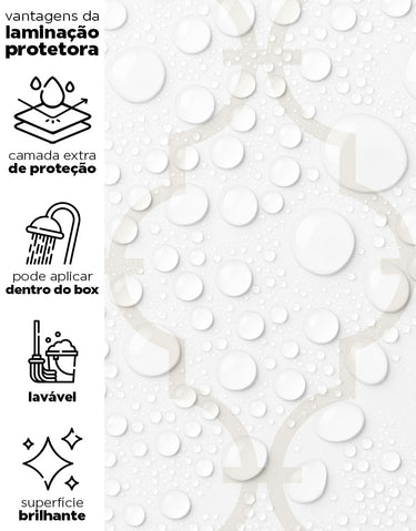 Nossos adesivos são laváveis e incluem linhas especiais para áreas úmidas, como box, pias, pisos, entre outros. Para locais com contato frequente com água ou que demandam limpezas constantes, sugerimos a aplicação da película protetora. Ela proporciona um acabamento brilhoso e pode ser facilmente higienizada com pano úmido e sabão neutro.