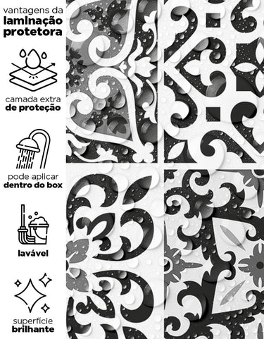 Nossos adesivos são laváveis e incluem linhas especiais para áreas úmidas, como box, pias, pisos, entre outros. Para locais com contato frequente com água ou que demandam limpezas constantes, sugerimos a aplicação da película protetora. Ela proporciona um acabamento brilhoso e pode ser facilmente higienizada com pano úmido e sabão neutro.