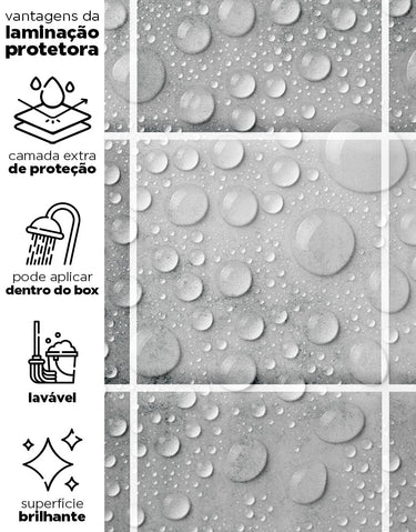 Nossos adesivos são laváveis e incluem linhas especiais para áreas úmidas, como box, pias, pisos, entre outros. Para locais com contato frequente com água ou que demandam limpezas constantes, sugerimos a aplicação da película protetora. Ela proporciona um acabamento brilhoso e pode ser facilmente higienizada com pano úmido e sabão neutro.