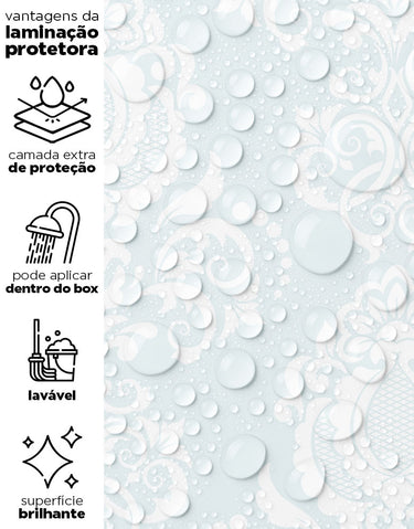 Nossos adesivos são laváveis e incluem linhas especiais para áreas úmidas, como box, pias, pisos, entre outros. Para locais com contato frequente com água ou que demandam limpezas constantes, sugerimos a aplicação da película protetora. Ela proporciona um acabamento brilhoso e pode ser facilmente higienizada com pano úmido e sabão neutro.
