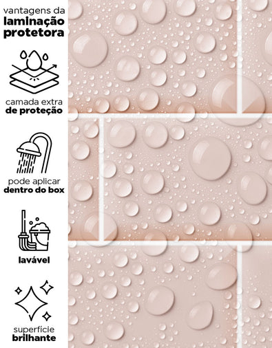 Nossos adesivos são laváveis e incluem linhas especiais para áreas úmidas, como box, pias, pisos, entre outros. Para locais com contato frequente com água ou que demandam limpezas constantes, sugerimos a aplicação da película protetora. Ela proporciona um acabamento brilhoso e pode ser facilmente higienizada com pano úmido e sabão neutro.