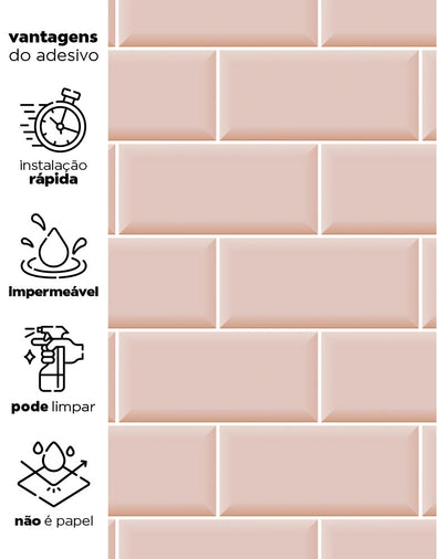 Adicione um toque de sofisticação ao seu espaço com o Adesivo de Azulejo Brick Metro Blush. Lavável e fácil de aplicar, ele é ideal para cozinhas e banheiros, proporcionando um visual moderno e elegante.