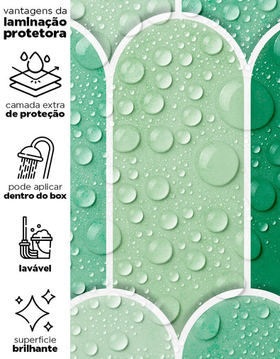 Nossos adesivos são laváveis e incluem linhas especiais para áreas úmidas, como box, pias, pisos, entre outros. Para locais com contato frequente com água ou que demandam limpezas constantes, sugerimos a aplicação da película protetora. Ela proporciona um acabamento brilhoso e pode ser facilmente higienizada com pano úmido e sabão neutro.