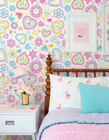 Crie um ambiente vibrante com o Papel de Parede Adesivo Corações Teen Coloridos. Lavável e fácil de aplicar, ele é perfeito para quartos infantis, proporcionando um visual alegre e moderno.