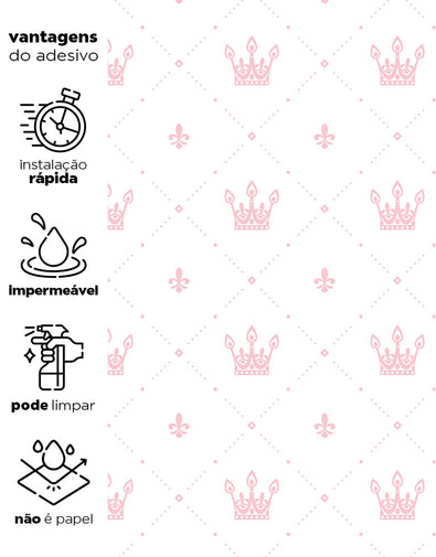 Crie um ambiente de conto de fadas com o Papel de Parede Adesivo Coroa Princesa Rosa. Lavável e fácil de aplicar, ele é perfeito para quartos infantis, proporcionando um visual encantador e elegante.