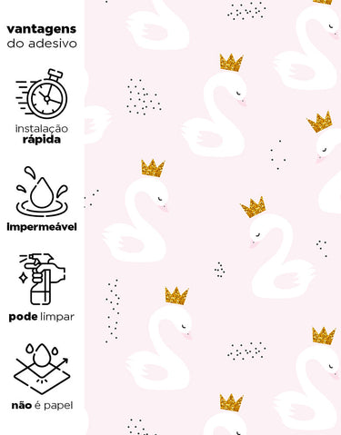 Adicione um toque de realeza ao quarto das crianças com o Papel de Parede Adesivo decorativo Cisne com Coroa. Lavável e fácil de aplicar, ele proporciona um visual encantador e elegante.