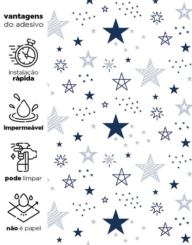 Crie um ambiente mágico com o Papel De Parede Adesivo Estrelas Encantada Azul. Lavável e fácil de aplicar, ele é perfeito para quartos infantis, proporcionando um visual encantador e moderno.