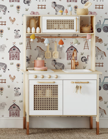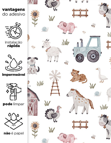 Transforme qualquer ambiente em um cantinho aconchegante do campo com o Papel de Parede Adesivo Fazendinha! Com ilustrações encantadoras de animais, celeiros e detalhes típicos da vida rural, ele traz um toque lúdico e acolhedor para quartos infantis, brinquedotecas e espaços temáticos. Fácil de aplicar e super versátil, esse papel de parede é perfeito para criar um clima leve e divertido no seu espaço!