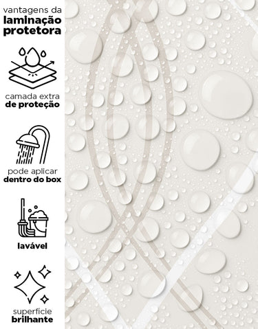 Nossos adesivos são laváveis e incluem linhas especiais para áreas úmidas, como box, pias, pisos, entre outros. Para locais com contato frequente com água ou que demandam limpezas constantes, sugerimos a aplicação da película protetora. Ela proporciona um acabamento brilhoso e pode ser facilmente higienizada com pano úmido e sabão neutro.
