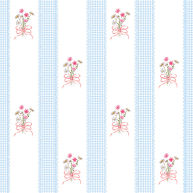Papel de Parede Adesivo Buquê de Flor Listrado Azul