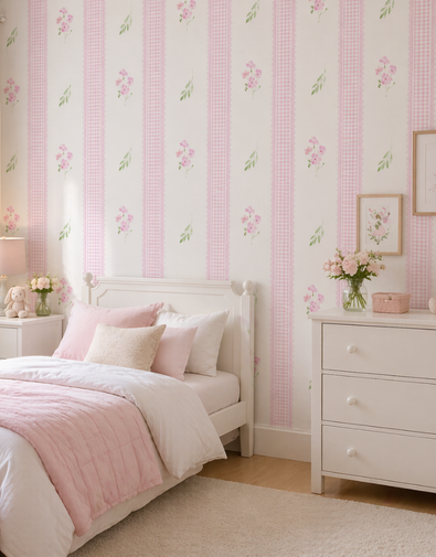O Papel de Parede Adesivo Floral Rosa Listrado Provençal é ideal para quem busca uma decoração delicada, suave e atemporal. A estampa combina listras em padrão xadrez rosa com pequenas flores em tons de rosa e ramos de folhas verdes, criando um visual leve e romântico, perfeito para quartos de bebê, quartos infantis, ambientes femininos, brinquedotecas, cantinhos de leitura e até decoração de festas.