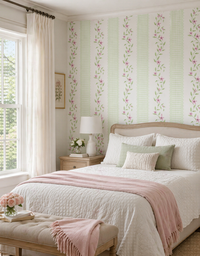 O Papel de Parede Adesivo Ramo Floral Listrado Verde é ideal para quem busca uma decoração delicada, suave e atemporal. A estampa combina listras em tom verde com ramos florais delicados e folhagens, criando um visual leve, harmonioso e romântico, perfeito para quartos de bebê, quartos infantis, ambientes femininos, brinquedotecas, cantinhos de leitura e até decoração de festas.