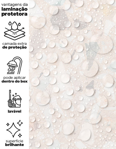 Nossos adesivos são laváveis e incluem linhas especiais para áreas úmidas, como box, pias, pisos, entre outros. Para locais com contato frequente com água ou que demandam limpezas constantes, sugerimos a aplicação da película protetora. Ela proporciona um acabamento brilhoso e pode ser facilmente higienizada com pano úmido e sabão neutro.