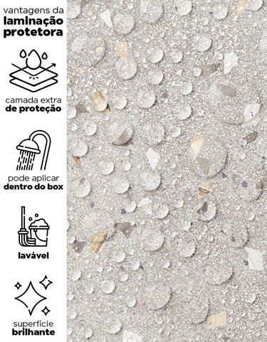 Nossos adesivos são laváveis e incluem linhas especiais para áreas úmidas, como box, pias, pisos, entre outros. Para locais com contato frequente com água ou que demandam limpezas constantes, sugerimos a aplicação da película protetora. Ela proporciona um acabamento brilhoso e pode ser facilmente higienizada com pano úmido e sabão neutro.