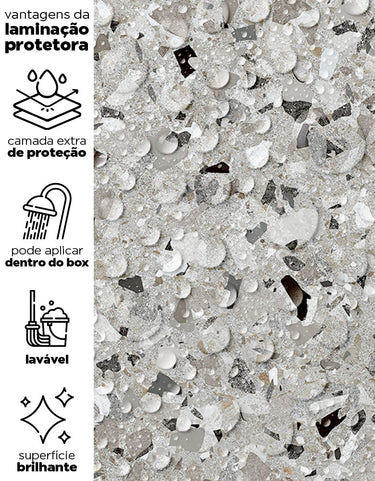 Nossos adesivos são laváveis e incluem linhas especiais para áreas úmidas, como box, pias, pisos, entre outros. Para locais com contato frequente com água ou que demandam limpezas constantes, sugerimos a aplicação da película protetora. Ela proporciona um acabamento brilhoso e pode ser facilmente higienizada com pano úmido e sabão neutro.