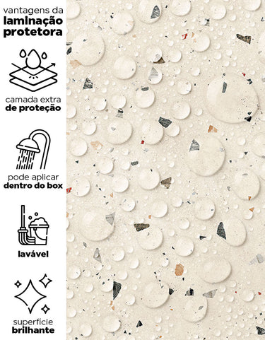 Nossos adesivos são laváveis e incluem linhas especiais para áreas úmidas, como box, pias, pisos, entre outros. Para locais com contato frequente com água ou que demandam limpezas constantes, sugerimos a aplicação da película protetora. Ela proporciona um acabamento brilhoso e pode ser facilmente higienizada com pano úmido e sabão neutro.