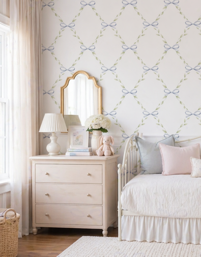 O Papel de Parede Adesivo Laço Azul é perfeito para quem busca uma decoração delicada, clássica e cheia de suavidade. Sua estampa combina laços em azul claro com ramos verdes em efeito aquarela, formando um padrão elegante, leve e atemporal que transforma o ambiente com charme e aconchego.