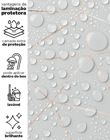 Nossos adesivos são laváveis e incluem linhas especiais para áreas úmidas, como box, pias, pisos, entre outros. Para locais com contato frequente com água ou que demandam limpezas constantes, sugerimos a aplicação da película protetora. Ela proporciona um acabamento brilhoso e pode ser facilmente higienizada com pano úmido e sabão neutro.