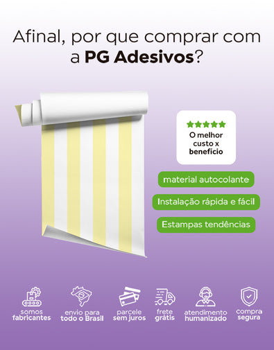 Garantimos que os nossos produtos cheguem em perfeito estado para você.Nossos adesivos são vendidos em rolos, com largura fixa de 50 cm. Oferecemos diversas opções de altura para se adequar às suas especificações. Precisa de ajuda? Chama nossos especialistas no whatsapp: 11 95784-2305