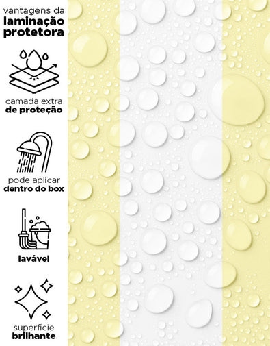 Nossos adesivos são laváveis e incluem linhas especiais para áreas úmidas, como box, pias, pisos, entre outros. Para locais com contato frequente com água ou que demandam limpezas constantes, sugerimos a aplicação da película protetora. Ela proporciona um acabamento brilhoso e pode ser facilmente higienizada com pano úmido e sabão neutro.