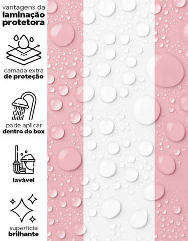 Nossos adesivos são laváveis e incluem linhas especiais para áreas úmidas, como box, pias, pisos, entre outros. Para locais com contato frequente com água ou que demandam limpezas constantes, sugerimos a aplicação da película protetora. Ela proporciona um acabamento brilhoso e pode ser facilmente higienizada com pano úmido e sabão neutro.