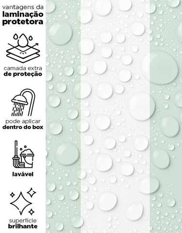 Nossos adesivos são laváveis e incluem linhas especiais para áreas úmidas, como box, pias, pisos, entre outros. Para locais com contato frequente com água ou que demandam limpezas constantes, sugerimos a aplicação da película protetora. Ela proporciona um acabamento brilhoso e pode ser facilmente higienizada com pano úmido e sabão neutro.