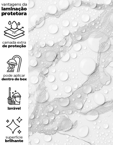 Nossos adesivos são laváveis e incluem linhas especiais para áreas úmidas, como box, pias, pisos, entre outros. Para locais com contato frequente com água ou que demandam limpezas constantes, sugerimos a aplicação da película protetora. Ela proporciona um acabamento brilhoso e pode ser facilmente higienizada com pano úmido e sabão neutro.
