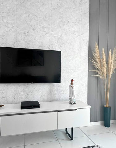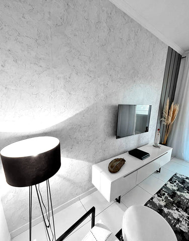 Dê um toque elegante ao seu ambiente com o Papel de Parede Adesivo Mármore Gelo. Lavável e fácil de aplicar, ele é ideal para quartos e salas, proporcionando um visual moderno e sofisticado.