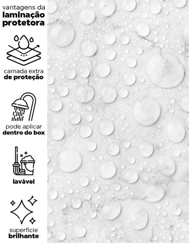 Nossos adesivos são laváveis e incluem linhas especiais para áreas úmidas, como box, pias, pisos, entre outros. Para locais com contato frequente com água ou que demandam limpezas constantes, sugerimos a aplicação da película protetora. Ela proporciona um acabamento brilhoso e pode ser facilmente higienizada com pano úmido e sabão neutro.