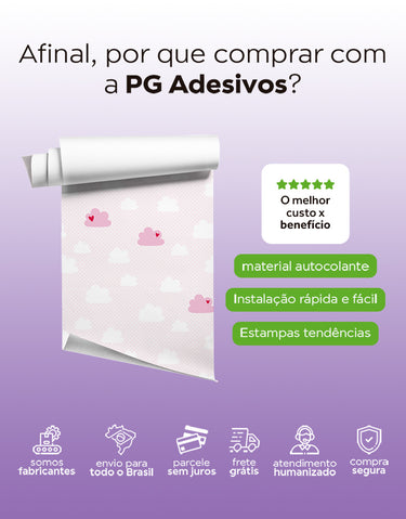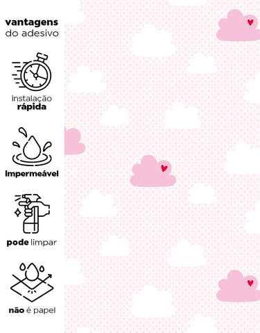 Adicione um toque delicado ao quarto do bebê com o Papel de Parede Adesivo Nuvem Coração Rosa. Lavável e fácil de aplicar, ele proporciona um visual encantador e moderno.