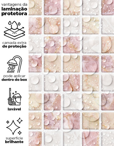 Nossos adesivos são laváveis e incluem linhas especiais para áreas úmidas, como box, pias, pisos, entre outros. Para locais com contato frequente com água ou que demandam limpezas constantes, sugerimos a aplicação da película protetora. Ela proporciona um acabamento brilhoso e pode ser facilmente higienizada com pano úmido e sabão neutro.