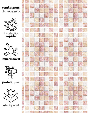 Adicione um toque de luxo ao seu espaço com o Papel de Parede Adesivo Pastilhas Rose Gold. Lavável e fácil de aplicar, ele é ideal para cozinhas e banheiros, proporcionando um visual sofisticado e moderno.