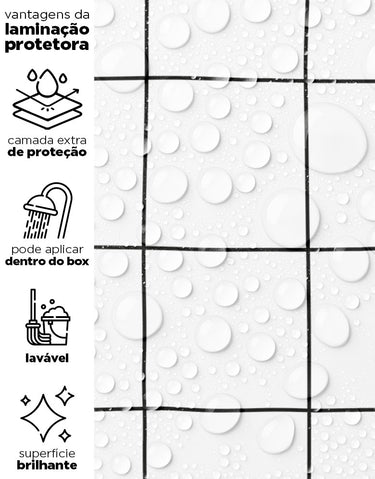 Nossos adesivos são laváveis e incluem linhas especiais para áreas úmidas, como box, pias, pisos, entre outros. Para locais com contato frequente com água ou que demandam limpezas constantes, sugerimos a aplicação da película protetora. Ela proporciona um acabamento brilhoso e pode ser facilmente higienizada com pano úmido e sabão neutro.