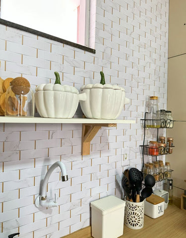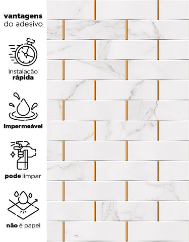 Dê um toque de luxo ao seu ambiente com o Papel de Parede Adesivo Tijolinho Marmorizado. Lavável e impermeável, é perfeito para cozinhas e banheiros. Sua fácil aplicação transforma o ambiente de forma prática e sofisticada.